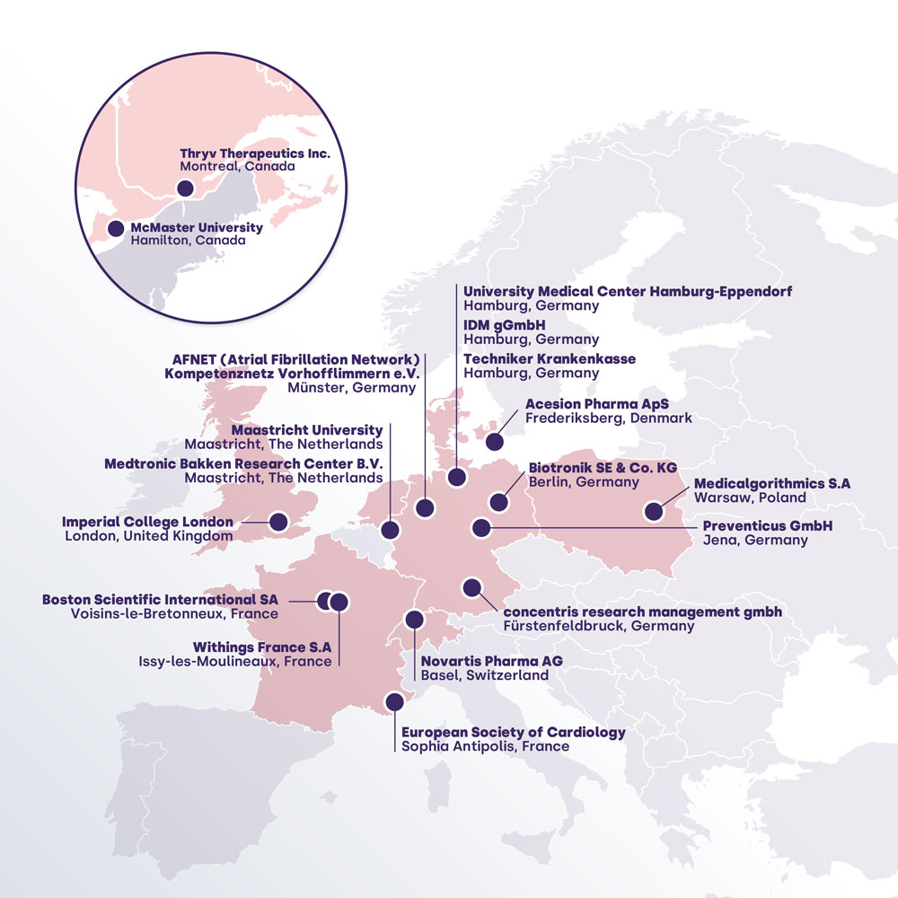 AF-B-STEP is an international research project that brings together hospitals, universities, industry partners, patient groups, and healthcare payors to improve how AF is measured, quantified, and treated. The consortium will analyse data from more than 100,000 people to estimate the population-wide burden of AF, identify which types of AF pose the greatest risk, and determine how AF burden increases likelihood of stroke or heart failure. It will also establish standards for how medical devices and consumer wearables should measure and report AF.